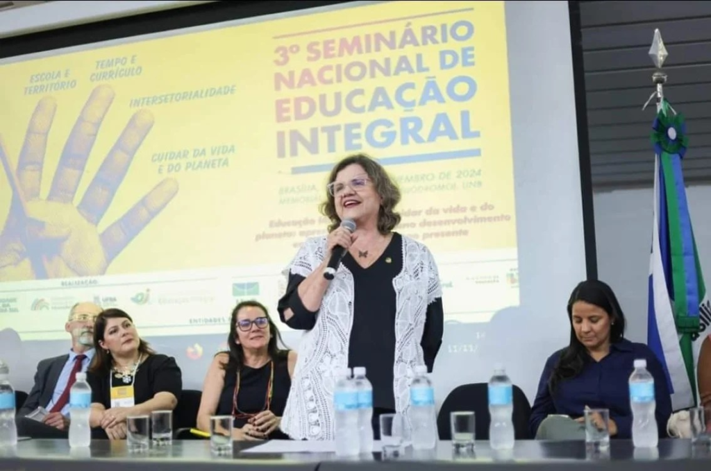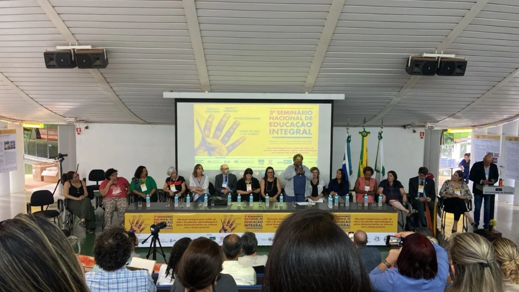 No dia 11 de novembro, teve início o 3° Seminário Nacional da Educação Integral, que se estenderá até o dia 14, no Memorial Darcy Ribeiro, popularmente conhecido como Beijódromo, na Universidade de Brasília (UnB). O evento, que reúne educadores, gestores e autoridades nacionais, tem como foco quatro dias de debates intensos sobre a Educação Integral, com um compromisso que vai além do tempo escolar, buscando promover o cuidado com a vida e com o planeta. O objetivo é possibilitar aprendizagens significativas e o desenvolvimento pleno de crianças e estudantes em todo o território brasileiro.