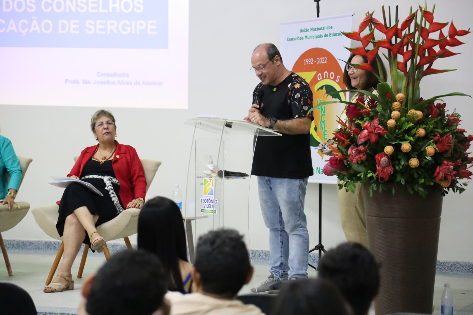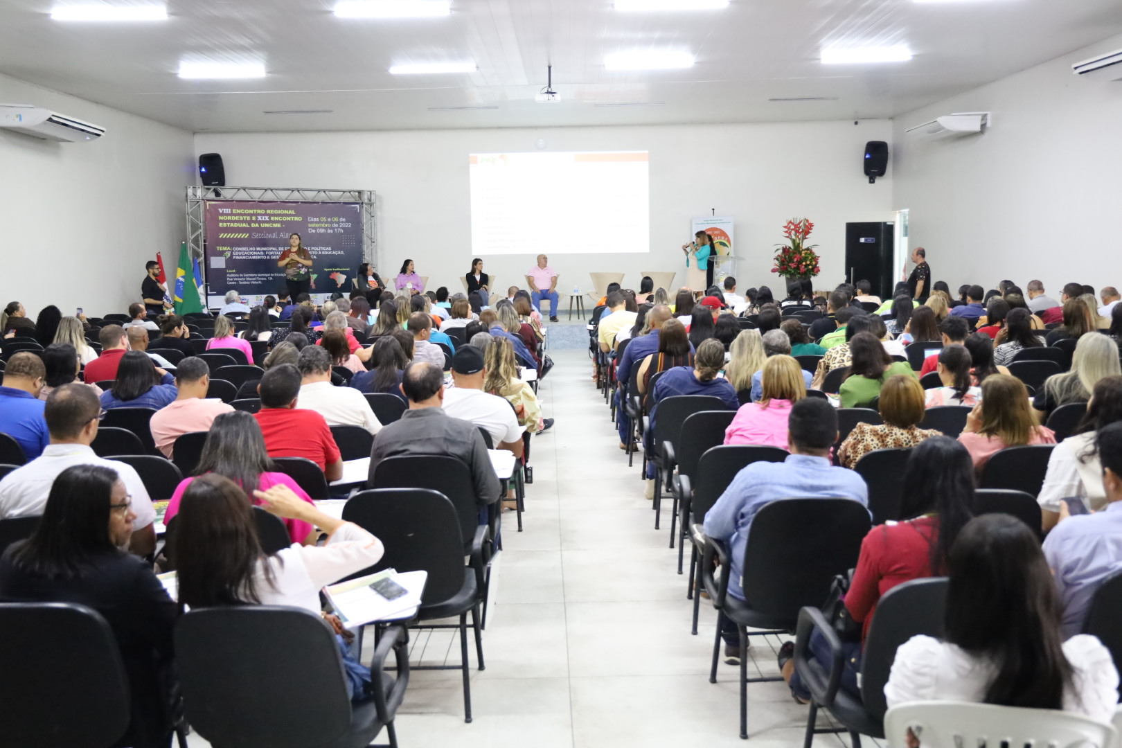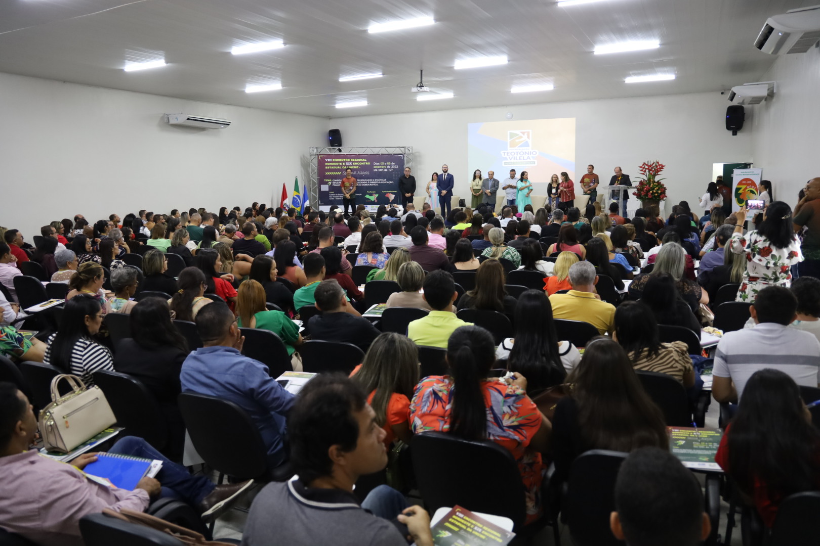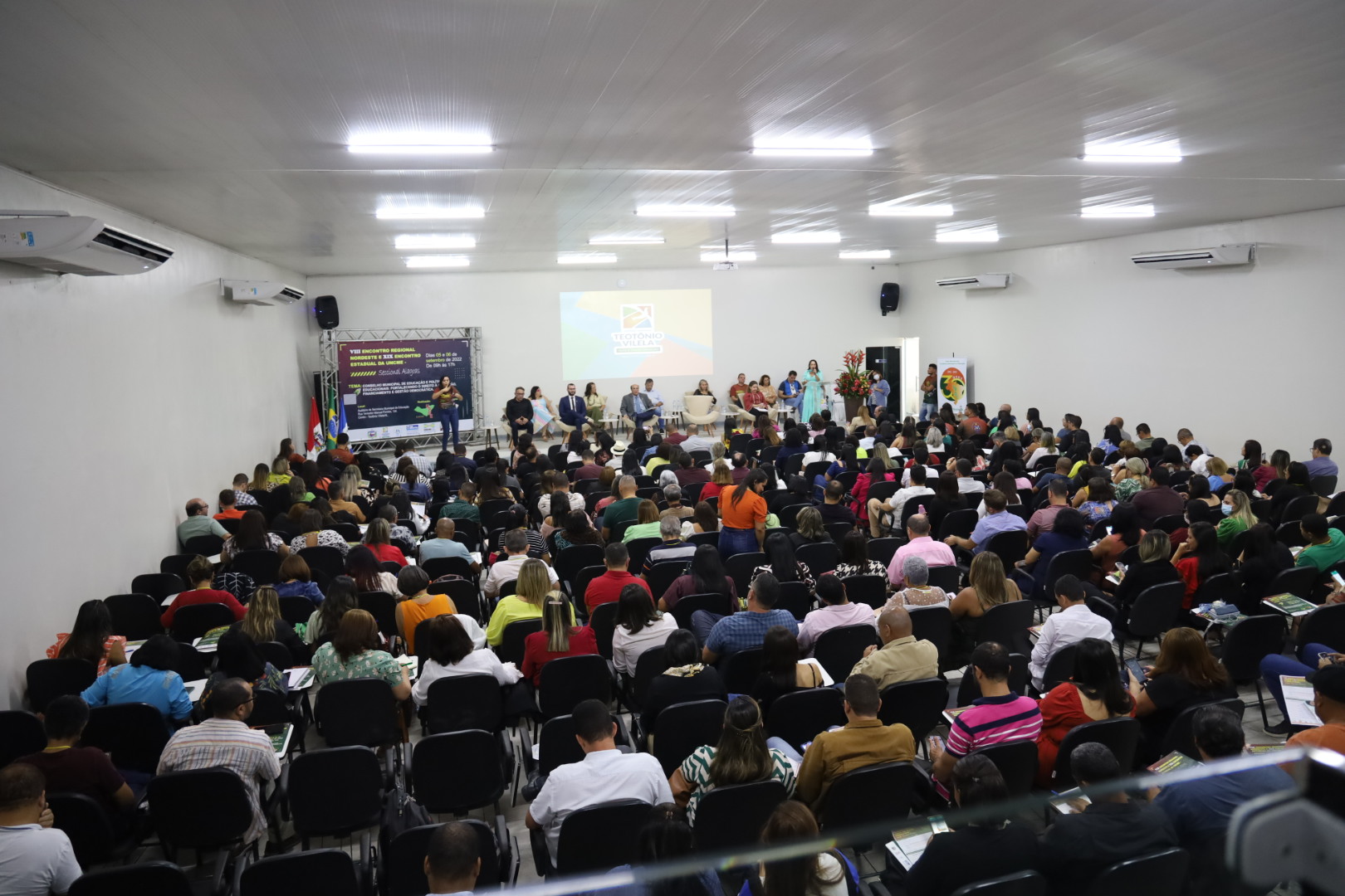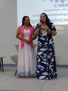 Entre os dias 05 e 06 de setembro ocorreu na cidade de Teotônio Vilela – Alagoas, o VIII Encontro Regional Nordeste e XIX Encontro Estadual da UNCME, com a presença de 450 conselheiros, técnicos e dirigentes municipais de Educação, o evento foi sucesso absoluto, e movimentou todo município. Como o evento também foi regional, estiveram presentes, os Estados da Bahia, Ceará, Paraíba, Pernambuco, Piauí, Rio Grande do Norte e Sergipe. Com o tema: Conselho Municipal de Educação e Políticas Educacionais, fortalecendo o Direito à Educação, Financiamento e Gestão Democrática, coube ao prof. Genuíno Bordignon a palestra sintetizadora do encontro. Ainda, a Primeira Infância, teve destaque acerca do direito, espaços e o brincar, painel comandado por Gilvânia Nascimento – UNCME, Solidade Menezes – RNPI, Ana Cláudia Leite – Instituto Alana, Elizangela Leal – REPI AL e Noêmia Pereira – DME de Teotônio Vilela. As experiências exitosas das seccionais seguiu a seguinte ordem: Eliane Souza – AL, Gilvânia Nascimento – BA, Antonete Gomes – CE, Temístocles Maciel – PB, Vaneska Melo – PE, Maria Antônia (Lilica) – PI, Juselice Alencar (Tuca) – SE, Sirleyde Dias – RN. O Financiamento para Educação coube à Diego Lutz – UFRGS e UNDIME RS. Para profa. Marly Vidinha, vice – presidente Nacional da UNCME para região Nordeste e coordenadora da Seccional Alagoas, o evento dessa magnitude e com procura altíssima de participação, demonstra a necessidade de uma preocupação mais que necessária de atenção aos conselhos da Educação, e de mais parcerias para que , as políticas públicas para Educação sejam prioridade absoluta.