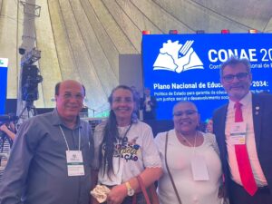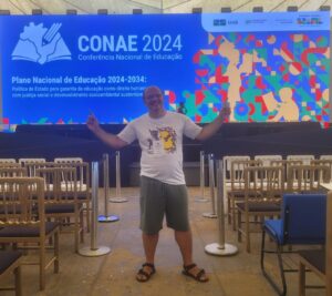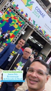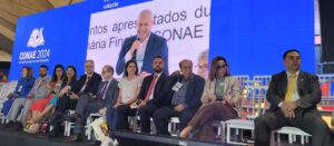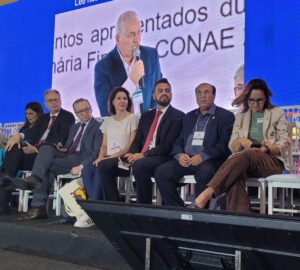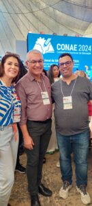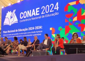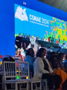 A CONAE 2024 começou com muita festa no domingo 28 de janeiro, no espaço Centro Comunitário Athos Bulcão/UNB. A abertura contou com a presença de autoridades nacionais e internacionais, entre elas, o Presidente Nacional da UNCME, Prof. Manoel Humberto Gonzaga Lima, os membros do Fórum Nacional de Educação (FNE), os Ministros Camilo Santana/Educação, Wellington Dias/Desenvolvimento Social, Luciana Santos/Ciência e Tecnologia e representantes de outros Ministérios. Coube a fala inicial ao Coordenador do FNE, Heleno Araújo, e ao Ministro Camilo Santana as boas-vindas e o breve histórico da CONAE e seu significado para a Educação brasileira.