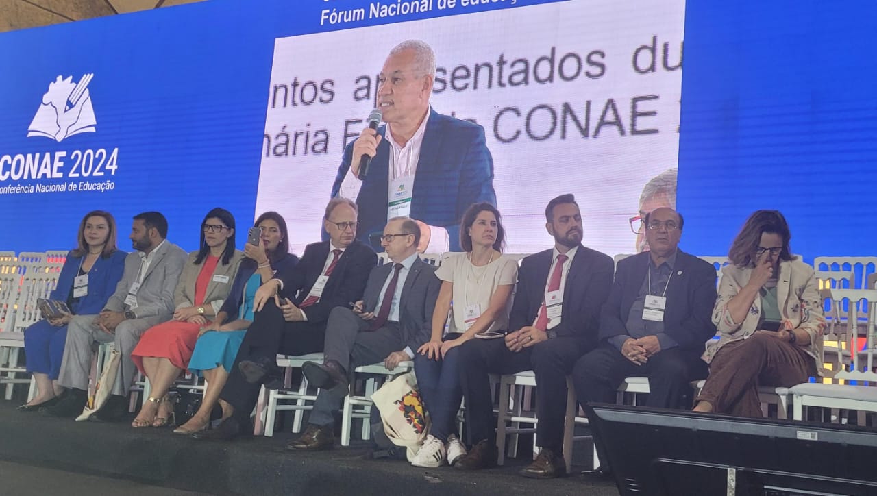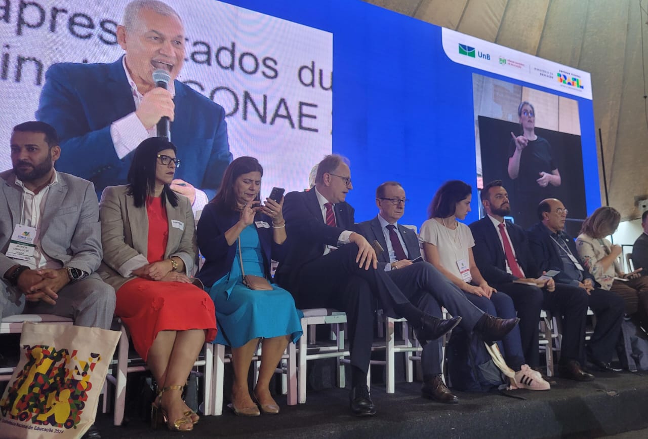 A CONAE 2024 começou com muita festa no domingo 28 de janeiro, no espaço Centro Comunitário Athos Bulcão/UNB. A abertura contou com a presença de autoridades nacionais e internacionais, entre elas, o Presidente Nacional da UNCME, Prof. Manoel Humberto Gonzaga Lima, os membros do Fórum Nacional de Educação (FNE), os Ministros Camilo Santana/Educação, Wellington Dias/Desenvolvimento Social, Luciana Santos/Ciência e Tecnologia e representantes de outros Ministérios. Coube a fala inicial ao Coordenador do FNE, Heleno Araújo, e ao Ministro Camilo Santana as boas-vindas e o breve histórico da CONAE e seu significado para a Educação brasileira.