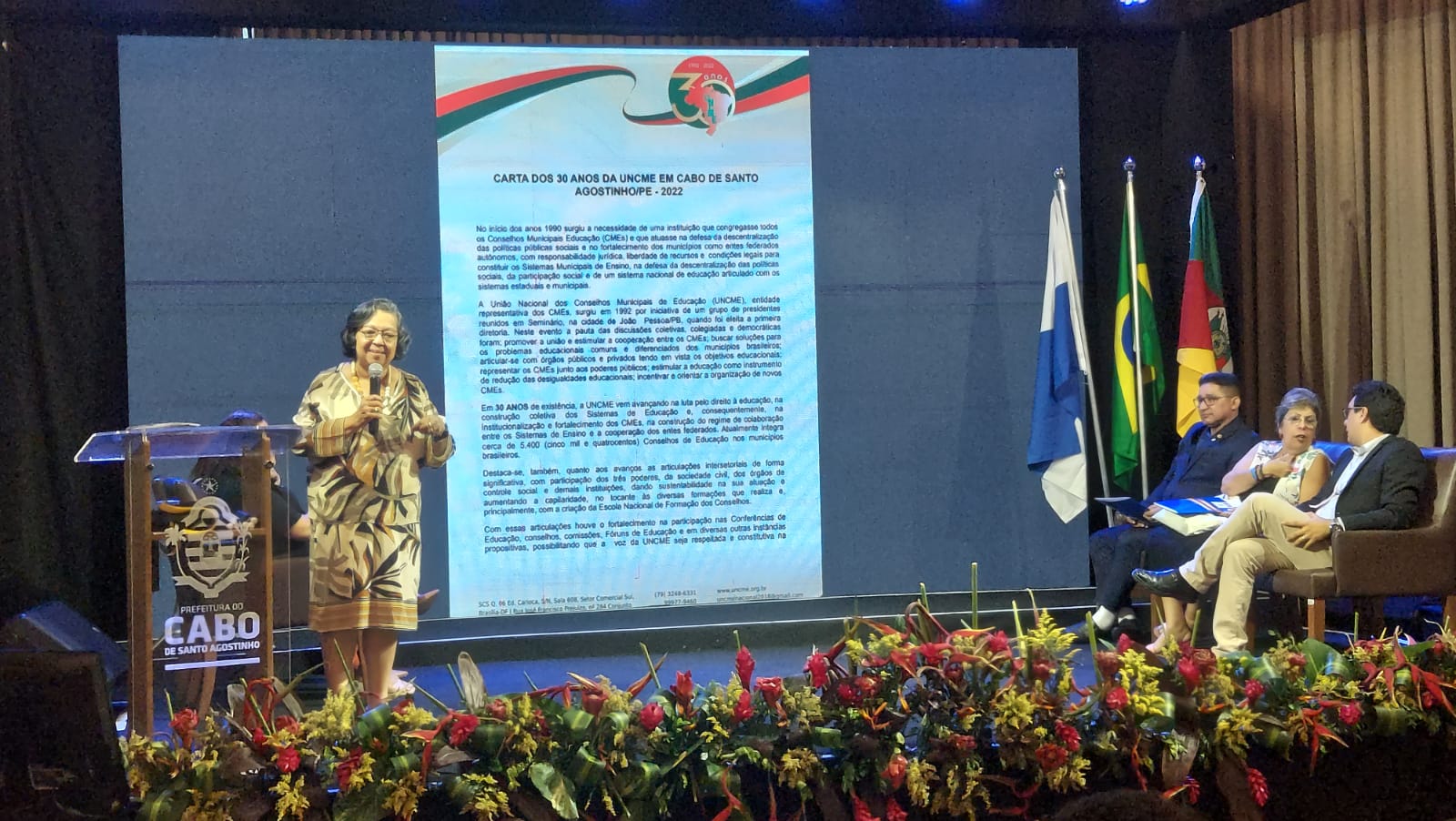 No último dia, além dos agradecimentos a prefeitura, secretaria e Conselhos Municipais da Educação do Cabo de Santo Agostinho – PE, foi lida a Carta da UNCME 2022, com os direcionamentos advindos do Encontro e apontando o norte para os anos subsequentes. Ao final foi eleita a sede do XXXII Encontro Nacional dos Conselhos Municipais da Educação, Nova Petrópolis – RS.