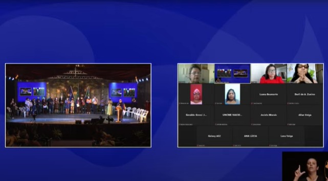 O primeiro momento da tarde aconteceu com a realização da Mesa10, que tratou do tema “POLÍTICA DE ENFRENTAMENTO À EXCLUSÃO ESCOLAR”. Esta mesa foi mediada pela Sra. Gilvânia Nascimento, Diretora Nacional de Legislação e Normas da UNCME e Coordenadora Estadual da UNCME-BA. Participaram da mesa de forma virtual o Sr. Luiz Miguel Costa Garcia, Presidente Nacional da UNDIME e a Sra. Julia Ribeiro, do UNICEF e de forma presencial o Sr. Milton Herrera – Coordenadora Estadual da UNCME-SP.