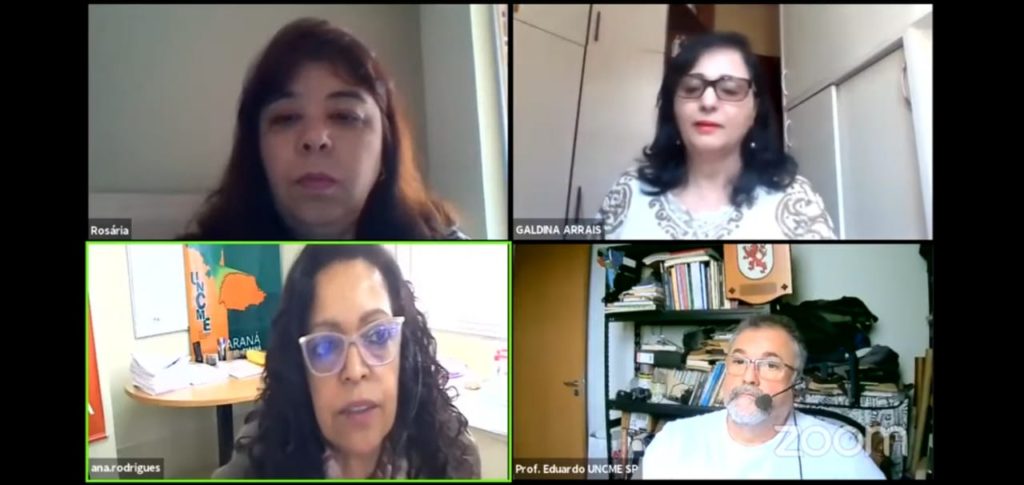 Outubro foi intenso na UNCME, mas três Encontros estaduais ocorreram com bastante ênfase nos desafios educacionais surgentes. Sendo dois no Centro – Oeste, Mato Grosso do Sul e Mato Grosso, e o último no Sudeste, especificamente MINAS GERAIS. Todos na modalidade virtual, devido a pandemia, juntos tiveram uma interação com mais de oito ( 8) mil internautas. O primeiro a ocorrer foi o do Mato Grosso do Sul, sob o comando da professora Alélis Gomes, coordenadora estadual da UNCME – MS que trouxe um tema bastante pertinente ao momento, “ FUNDEB e Aulas Remotas”. O I Seminário Virtual da UNCME – MS ocorreu nos dias 22 e 23/10. O segundo encontro do mês esteve sobre a batuta do professor Edemar Kamchen, coordenador da UNCME – MT, o XV Encontro Estadual de Conselhos de Educação do Mato Grosso também congregou o I Fórum de Conselhos Municipais de Educação do Mato Grosso. O tema escolhido foi “ A Garantia do Direito a Educação em Tempos de Pandemia: Desafios, possibilidades e perspectivas”. Ocorrendo em 27 e 28/10. O último Encontro Estadual do mês ficou a cargo do Sudeste, especificamente Minas Gerais ocorrido no último dia 30/10, sob o comando da professora Galdina Arrais, coordenadora da UNCME – MG. O tema escolhido foi “ Os Conselhos Municipais de Educação como Garantia de Direito à Educação Pública”. Muitos foram os Nomes e autoridades que passaram pelos ENCONTROS: Professor Manuel Humberto Gonzaga, presidente nacional da UNCME, Professor Eduardo César, coordenador da UNCME – SP e vice – presidente nacional para região Sudeste, Professora Ana Lúcia, coordenadora da UNCME – PR e vice – presidente nacional para região Sul, Professora Regina Araújo, vice – presidente nacional da UNCME para região Centro – Oeste, Professora Darli Zunino, Diretora de Formação Nacional da UNCME, Professora Gilvânia Nascimento, coordenadora da UNCME – BA e Diretora Nacional de Legislação e Normas da UNCME, Professora Fabiane Bitello, coordenadora da UNCME – RS e Diretora Nacional de Articulação e Comunicação da UNCME, Professor Emerson Araújo, coordenador da UNCME – MA e coordenador nacional de comunicação, Professor Elcivan França, coordenador da UNCME – GO, Professor Geraldo Grossi e o Senador Flávio Arns, dentre outros. Abaixo fotos e links dos Encontros.