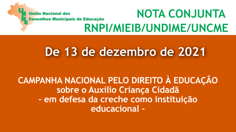 Nota conjunta RNPI/MIEIB/UNDIME/UNCME/CAMPANHA NACIONAL PELO DIREITO À EDUCAÇÃO sobre o Auxílio Criança Cidadã, em defesa da creche como instituição educacional