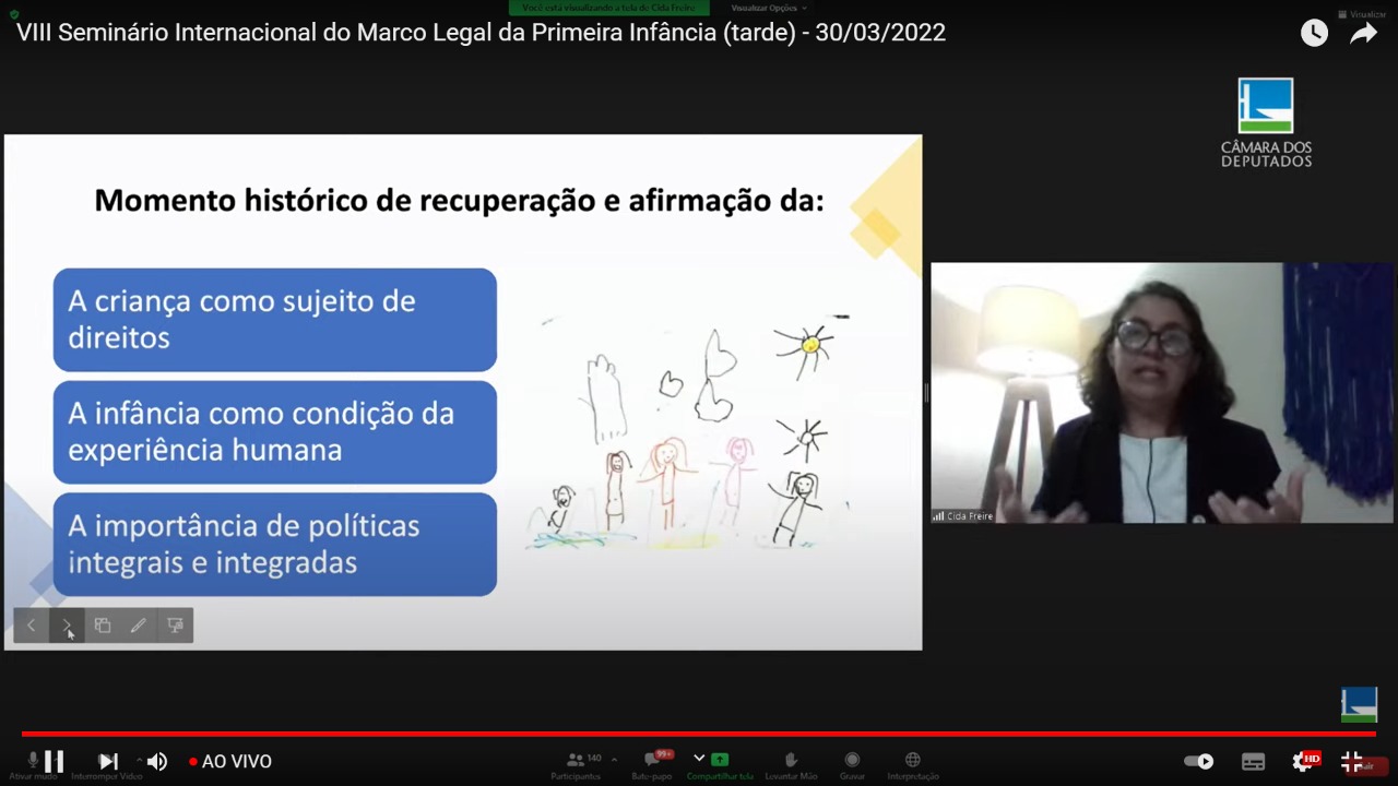 Hoje teve início o VIII Seminário Internacional do Marco Legal da Primeira Infância, que aconteceu de forma híbrida. O Seminário foi promovido pela Frente Parlamentar Mista da Primeira Infância e a Secretaria da Mulher da Câmara dos Deputados e teve como tema “Avanços e desafios na escuta das crianças e no enfrentamento à pandemia”.