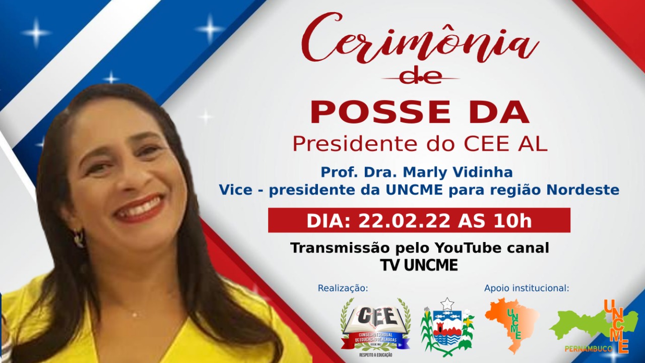 No dia de hoje, tomou posse como presidente do Conselho Estadual de Educação de Alagoas a conselheira Srª. MARLY DO SOCORRO PEIXOTO VIDINHA.