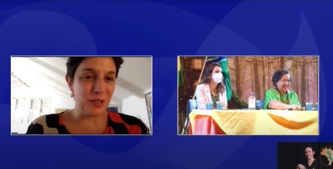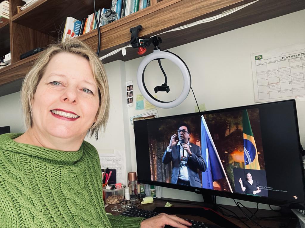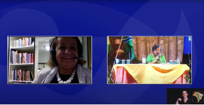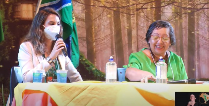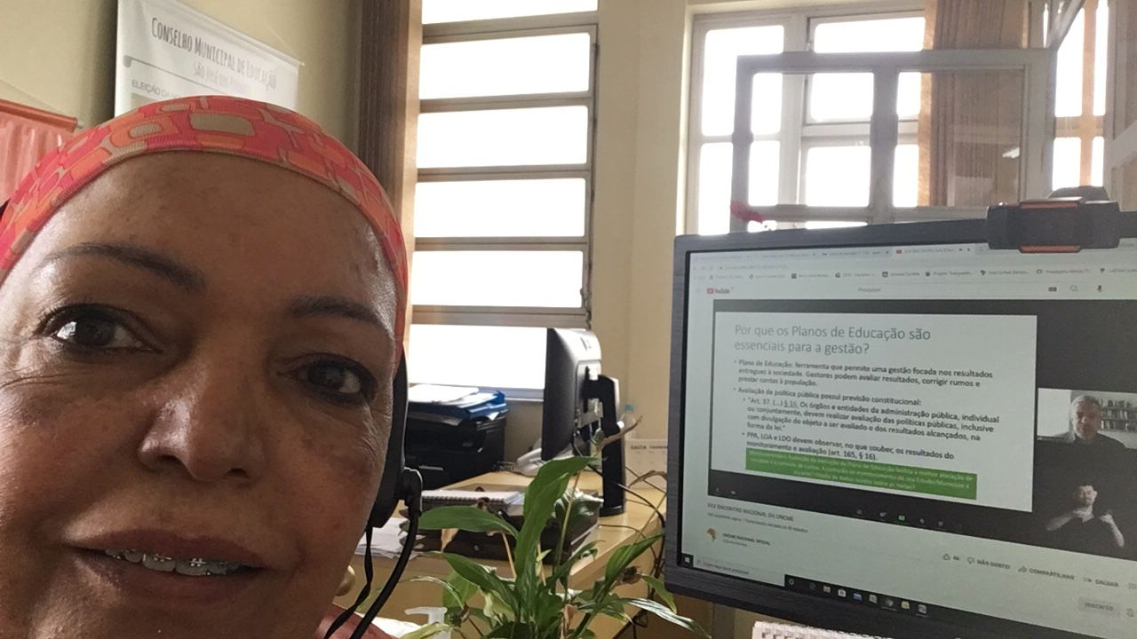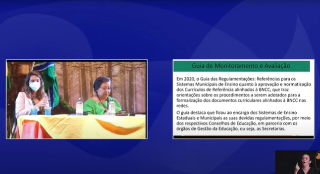 Para finalizar a manhã, tivemos a realização da MESA 3 com o tema “A BNCC E OS CURRÍCULOS MUNICIPAIS”, sendo mediada pela Srª. Regina Lúcia Borges Araújo, Vice-Coordenadora da UNCME-MT. Participaram da mesa de forma virtual a Sra. Alice Ribeiro – Movimento Pela Base e a Sra. Darli Zunino – Diretora de Formação da UNCME Nacional e com a presença física da Srª. Deborah Kaufamann – Observatório da BNCC.