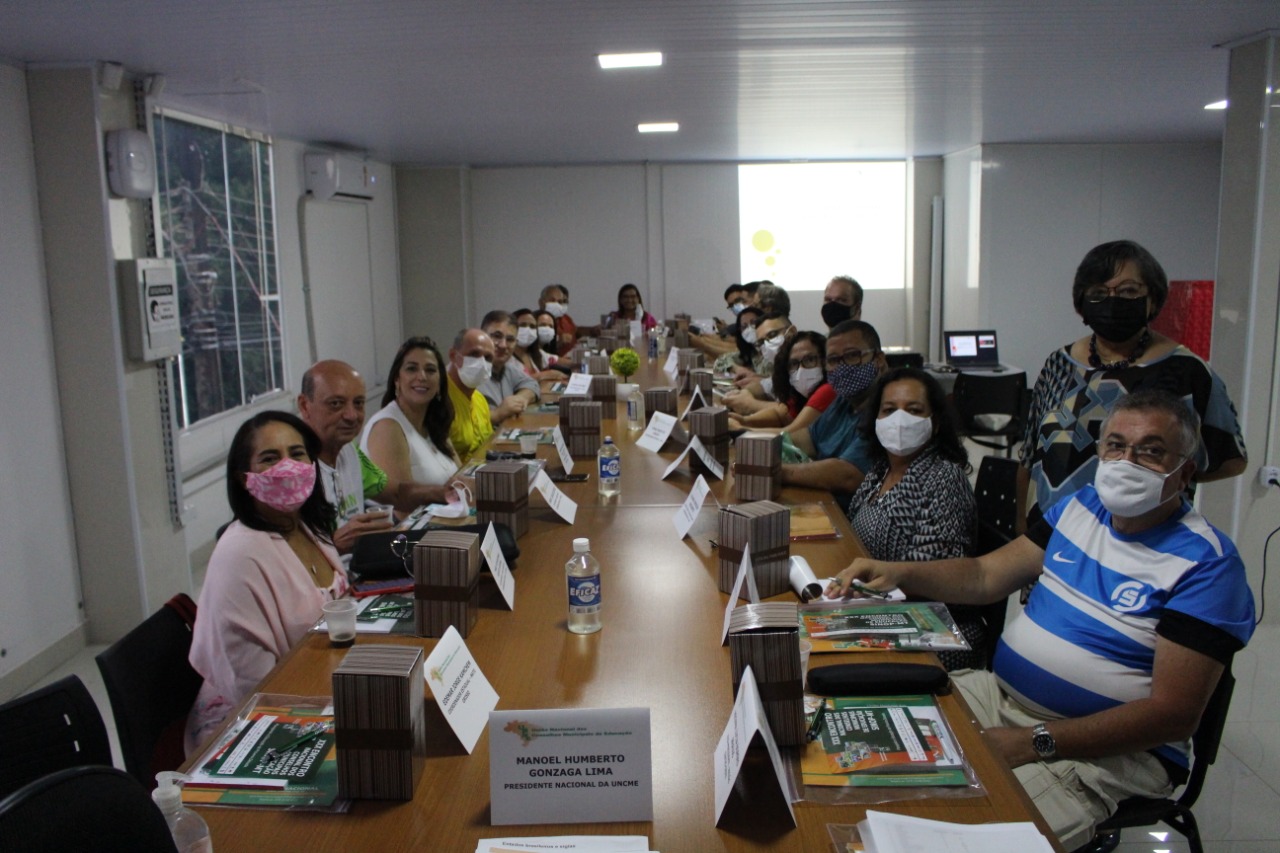 Na tarde de hoje, dia 08 de Dezembro, como parte da programação do XXX Encontro Nacional dos Conselhos Municipais de Educação, que está sendo realizado em SINOP-MT, a Diretoria Executiva da UNCME Nacional esteve reunida, juntamente com o Conselho Fiscal, nas dependências do CME de SINOP-MT para tratar de diversos assuntos de interesse da referida entidade. O Sr. Manoel Humberto Gonzaga Lima – Presidente, deu início a reunião saudando a todos, manifestou a alegria de estar realizando esse encontro presencial depois de muito tempo. Na reunião foram tratados de diversos assuntos, entre eles: