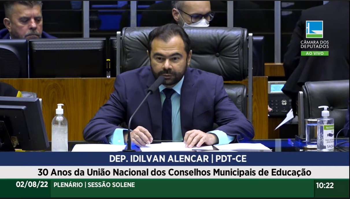 Ocorreu na manhã desta terça-feira, 02 de agosto, a Sessão Solene em Homenagem ao 30 Anos da União Nacional dos Conselhos Municipais de Educação – UNCME, na Câmara dos Deputados e a mesma foi resultado de uma solicitação realizada pelo Deputado Idilvan Alencar.