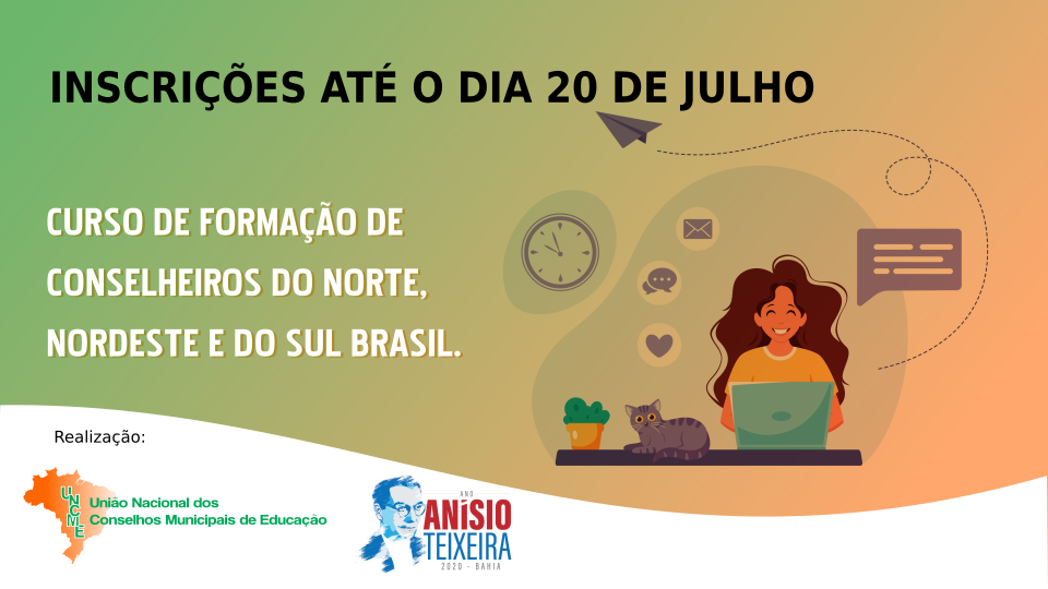 A União Nacional dos Conselhos Municipais da Educação, através de sua Escola Nacional de Formação dos Conselheiros Municipais da Educação, em parceria com o Instituto Anísio Teixeira, abre inscrições para todo Norte, Nordeste, e alguns Estados do sul do Brasil, em seu curso de formação. Clique aqui para visualizar o Edital.