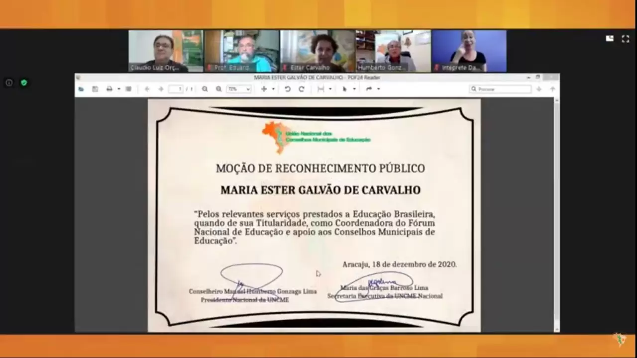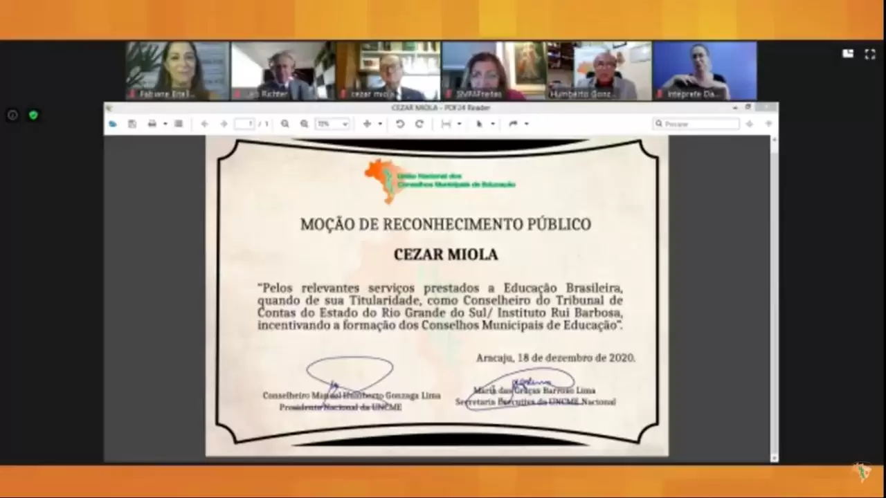 A União Nacional dos Conselhos Municipais de Educação – UNCME, realizou entre os dias 16, 17 e 18 de dezembro, seu I Encontro Nacional Virtual dos Conselhos Municipais de Educação, evento este que contou com a transmissão pelos canais do YouTube TV UNCME e UNCME NACIONAL OFICIAL.