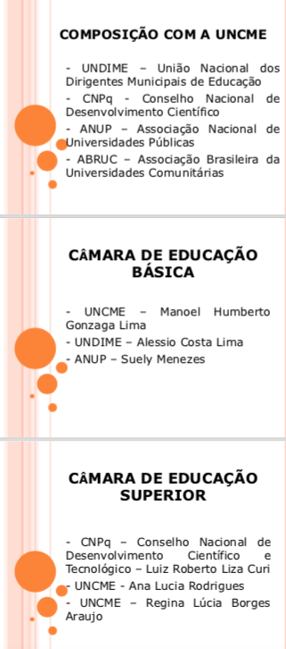 União Nacional dos Conselhos Municipais de Educação – UNCME; e