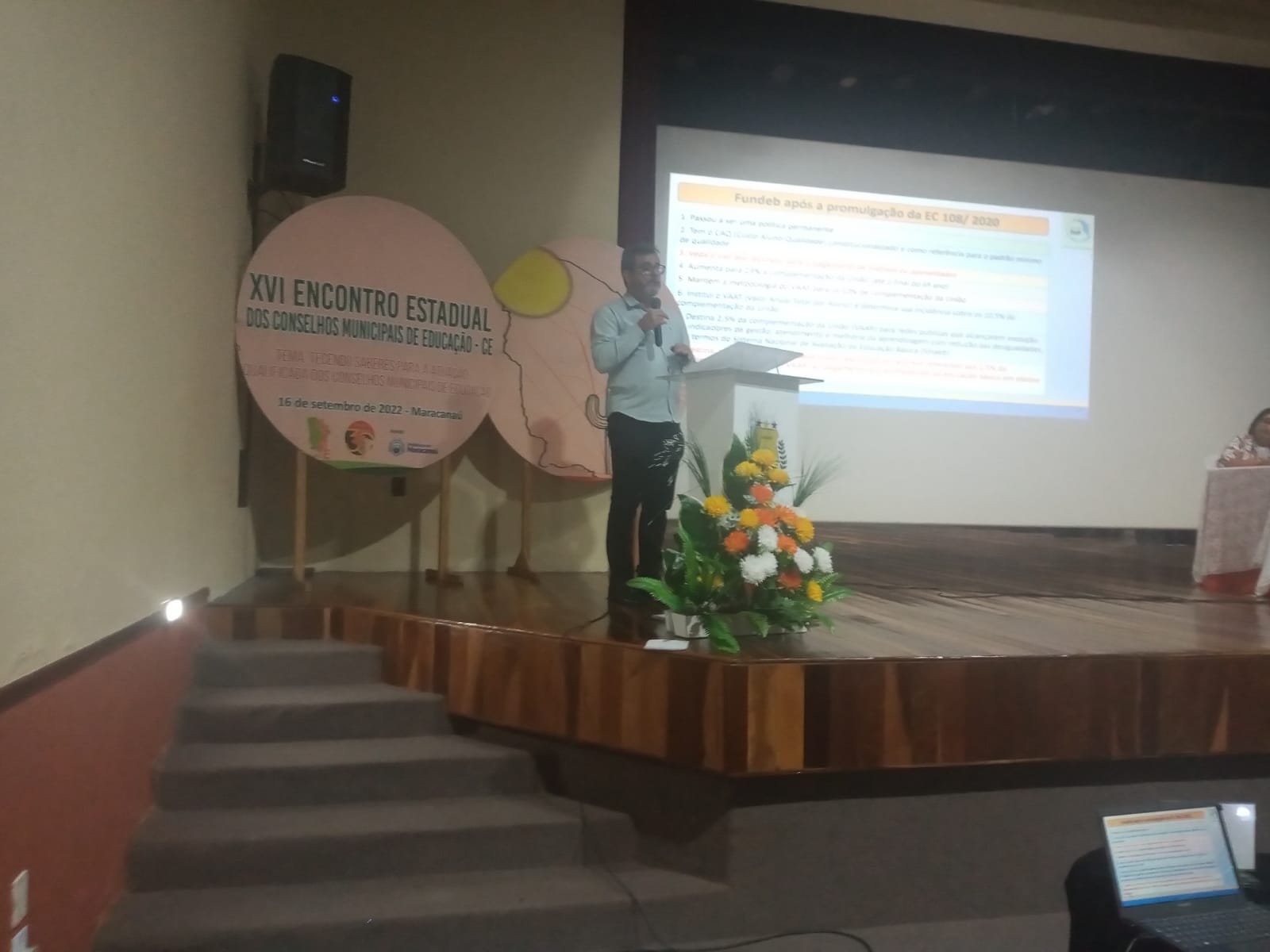 O XVI Encontro Estadual dos Conselhos Municipais de Educação do Ceará foi realizado nesta sexta-feira, 16 de setembro, no Teatro do Centro Cultural Dorian Sampaio, em Maracanaú. O objetivo foi fortalecer os Conselhos Municipais de Educação – CMEs, considerando suas funções e atribuições com vistas a contribuir efetivamente com a garantia do direito à educação com qualidade social.