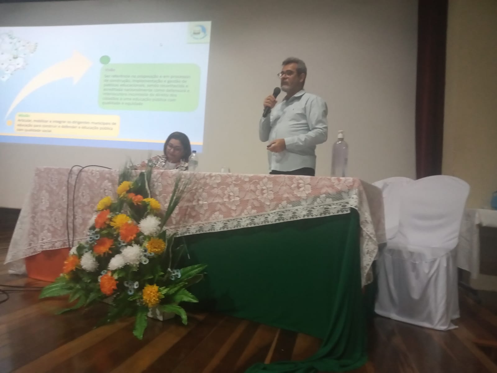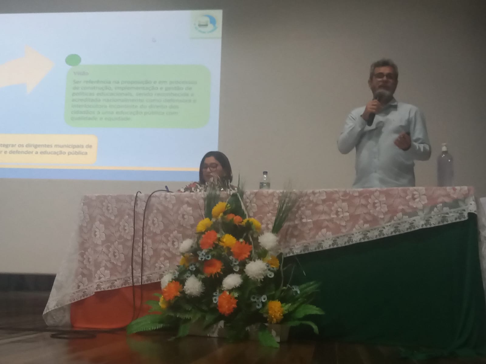 O Professor Mestre Geraldo Grossi Júnior palestrou sobre “Tecendo reflexões sobre o Sistema Nacional de Educação (SNE): demandas e perspectivas para os Sistemas Municipais de Ensino”. Professor Doutor Aléssio Costa Lima discorreu sobre “Financiamento e gestão democrática: papel e desafios dos órgãos de controle social no acompanhamento dos Planos de Educação”.