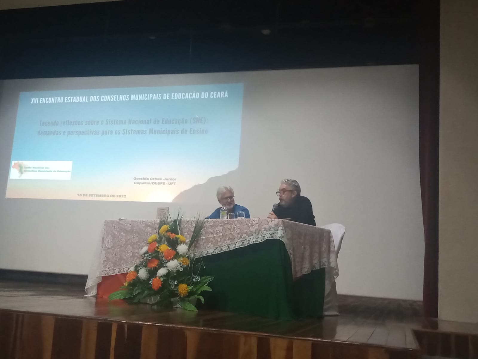 O evento contou com mesa redonda sobre o tema “Parcerias para o fortalecimento dos Conselhos Municipais de Educação” e com apresentações sobre “O olhar dos Dirigentes Municipais de Educação sobre o fortalecimento do Sistema Municipal de Ensino”, “O percurso da parceria para a criação e fortalecimento dos Conselhos Municipais de Educação” e “Perspectivas para a institucionalização e formação de novos CME’s com função normativa” e “Demandas, ações e alinhamentos necessários para as atividades da UNCME – Carta da UNCME CE”.