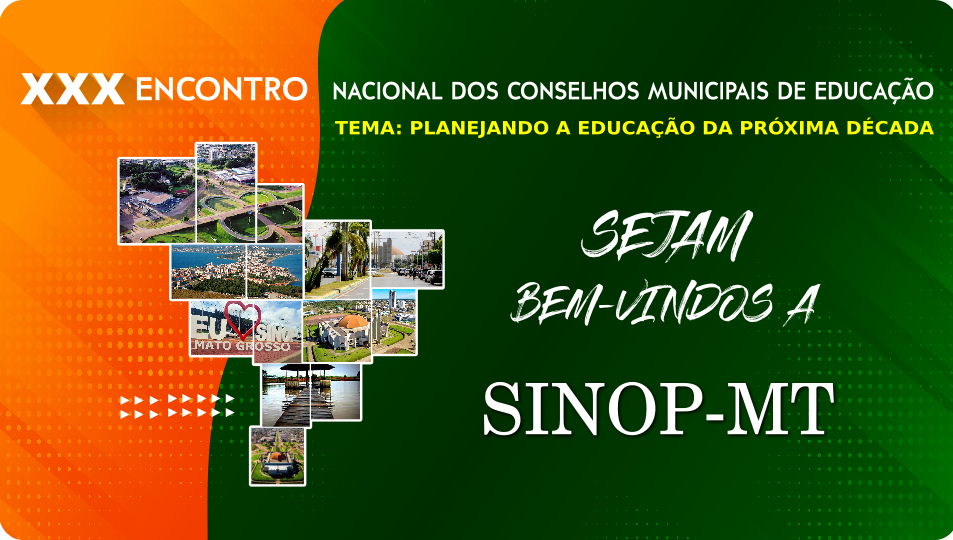 A União Nacional dos Conselhos Municipais da Educação – UNCME, convida Conselheiros, Dirigentes Municipais de Educação, Autoridades Políticas e de Entidades Parceiras a participarem do XXX ENCONTRO NACIONAL DOS CONSELHOS MUNICIPAIS DE EDUCAÇÃO que ocorrerá em formato híbrido nos dias 08, 09 e 10 de dezembro de 2021, Centro de Eventos Dante de Oliveira, em Sinop, Mato Grosso.