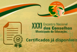 DISPONÍVEL CERTIFICADO DO XXXI ENCONTRO NACIONAL DOS CONSELHOS MUNICIPAIS DE EDUCAÇÃO – UNCME 2022.