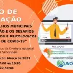 - Os Conselhos Municipais de Educação e os desafios pedagógicos e psicológicos em tempo de COVID-19Público-alvo: membros da Diretoria Nacional da UNCME e das seccionaisPeríodo: março de 2021Horário: das 17h às 19hCarga horária: 20h