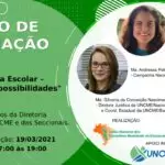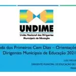 - Agenda dos primeiro cem dias: orientações para dirigentes municipais de educação – 2021Público-alvo: membros da Diretoria Nacional da UNCME e das seccionaisData: 02/03/2021Horário: das 17h às 19h