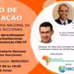 - Avaliação da aprendizagem, grande escala/institucional: pareceres e resolução do CNE/CP nº 02/2020Público-alvo: membros da Diretoria Nacional da UNCME e das seccionaisData: 09/03/2021Horário: das 17h às 19h