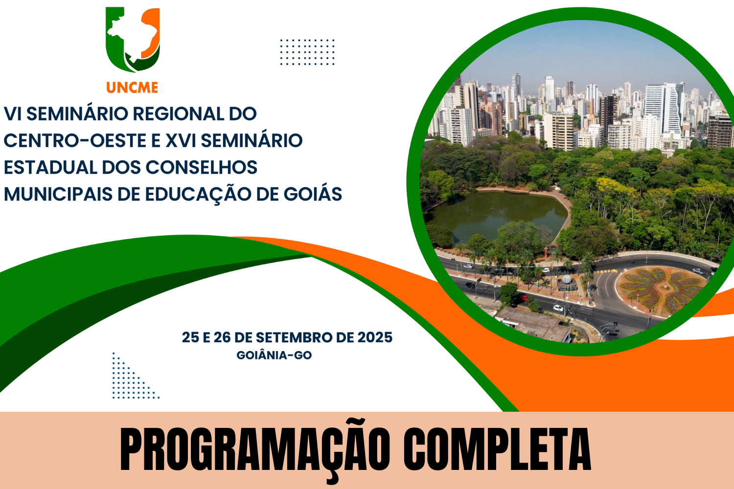 Programação do VI Seminário Regional do Centro-Oeste e XVI Seminário Estadual dos Conselhos Municipais de Educação de Goiás