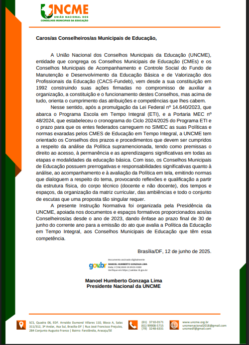 INSTRUÇÃO NORMATIVA AOS CONSELHOS MUNICIPAIS DE EDUCAÇÃO A RESPEITO DA INSTITUCIONALIZAÇÃO E NORMATIZAÇÃO DE POLÍTICAS DE EDUCAÇÃO INTEGRAL EM TEMPO INTEGRAL, COMO ESTABELECIDO NO ART. 6º DA PORTARIA 1.495, DE 02 DE AGOSTO DE 2023 NO ÂMBITO DO PROGRAMA ESCOLA EM TEMPO INTEGRAL – MEC